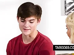 Sexy stepmother fucks her stepson while her husband is at make believe